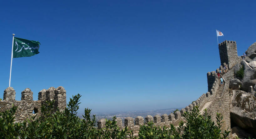 横图,室外,白天,建筑,旗帜,葡萄牙,城堡,历史,摄影,万里无云,新特拉,彩图