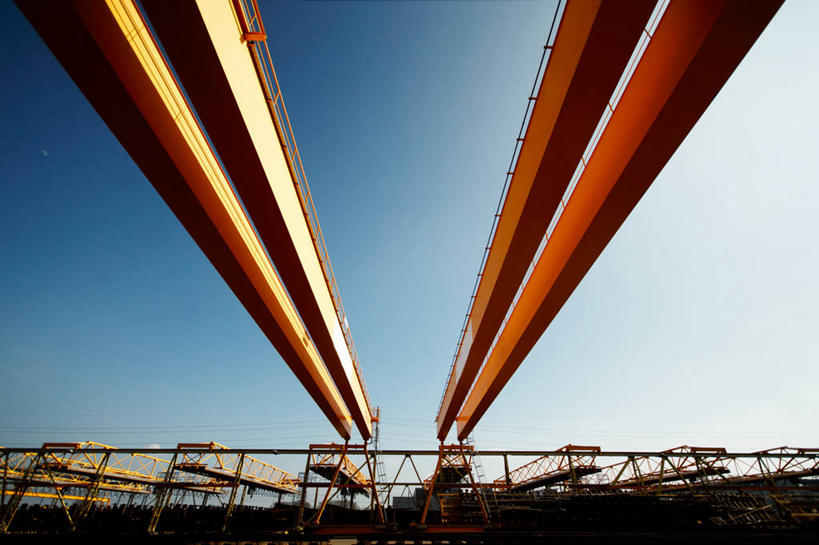 无人,横图,室外,白天,仰视,瑞士,黄色,工业,摄影,支撑,万里无云,彩图,低角度拍摄,液压升降平台_淘图客Talkimages图片库