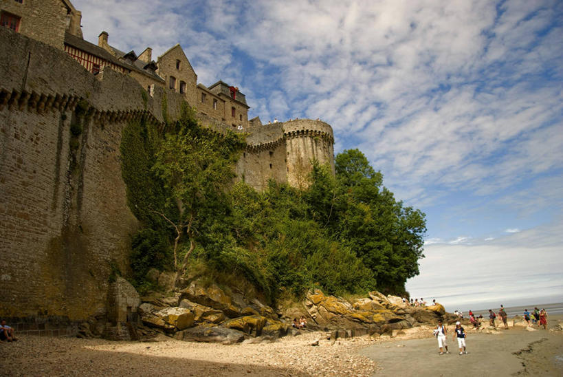 教堂,横图,室外,白天,山,建筑,法国,海岸线,云,围墙,历史,树,天空,摄影,基督教,圣米歇尔山,..._淘图客Talkimages图片库