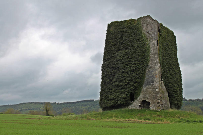 无人,横图,室外,白天,山,爱尔兰,城堡,常春藤,历史,废墟,草,自然,摄影,沃特福德郡,彩图
