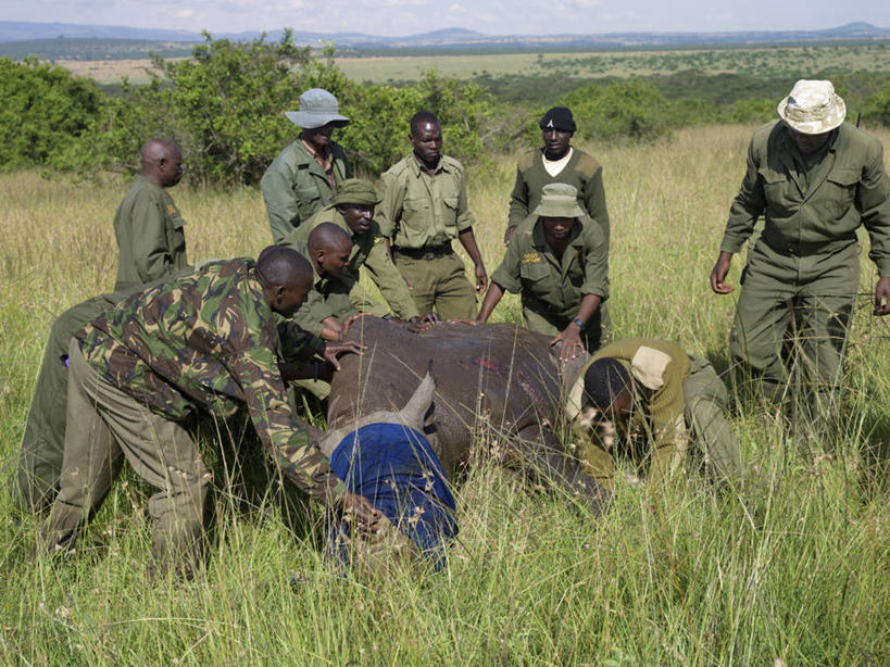 成年人,横图,野生动物,非洲,肯尼亚,动物,摄影,黑犀牛,濒危物种,男人,犀牛,彩图,风帽,护林员