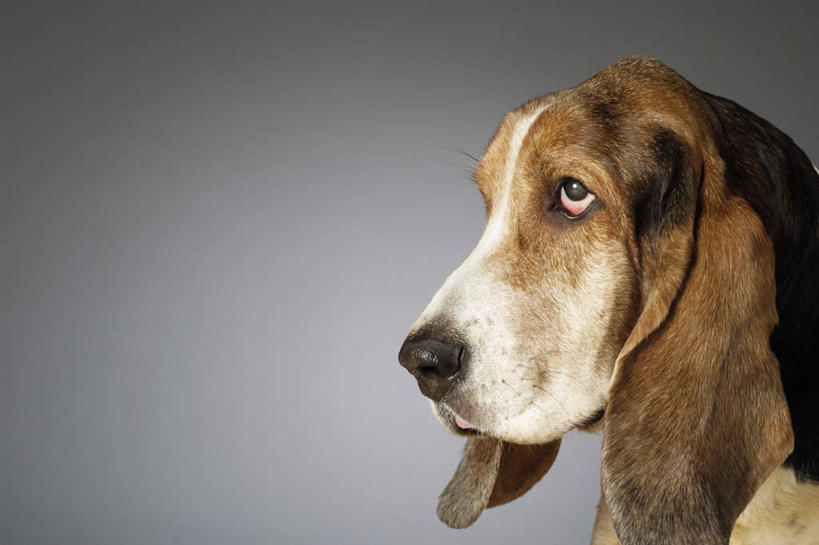 头,无人,横图,室内,特写,白天,侧面,宠物,狗,灰色背景,注视,巴吉度猎犬,一只,黄色,动物,观察,看,可爱,摄影,影棚,观看,巴吉度,察看,关注,忠诚,法国短脚猎犬,头部,犬,半身,彩图,影棚拍摄,拍摄