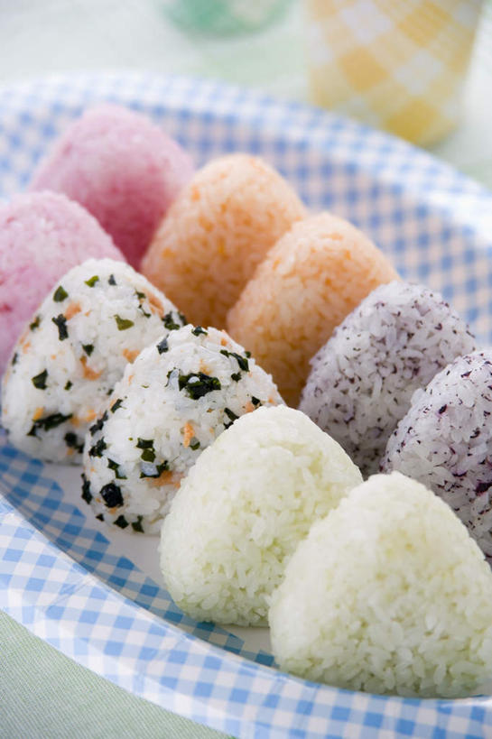 米饭,饭团,无人,竖图,俯视,室内,特写,白天,烹饪,桌面,桌子,餐具,一排,阴影,整齐,光线,木制..._淘图客Talkimages图片库